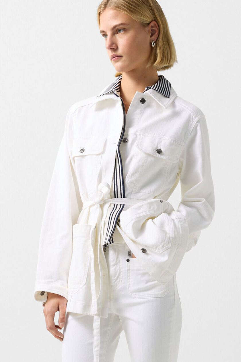 Indispensable this season: tone-on-tone looks in denim. The waist belt and A-line skirt create a feminine look.